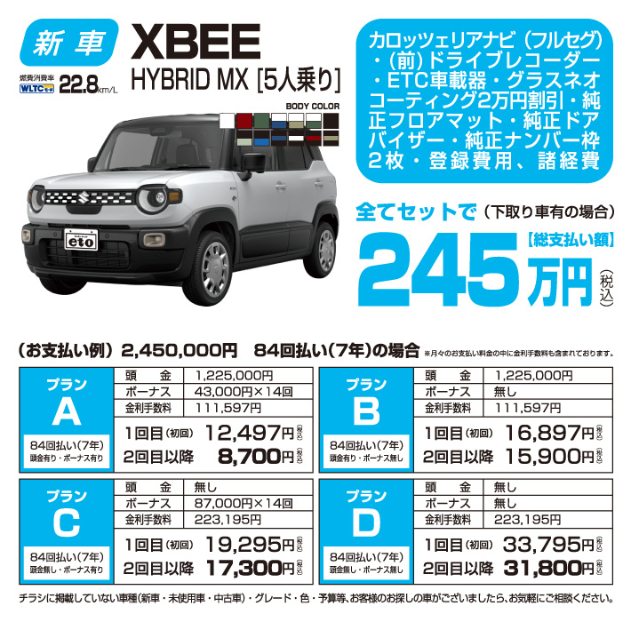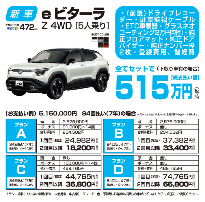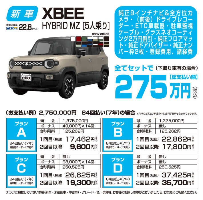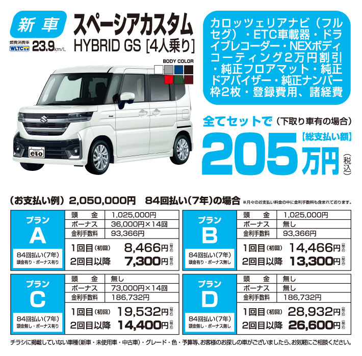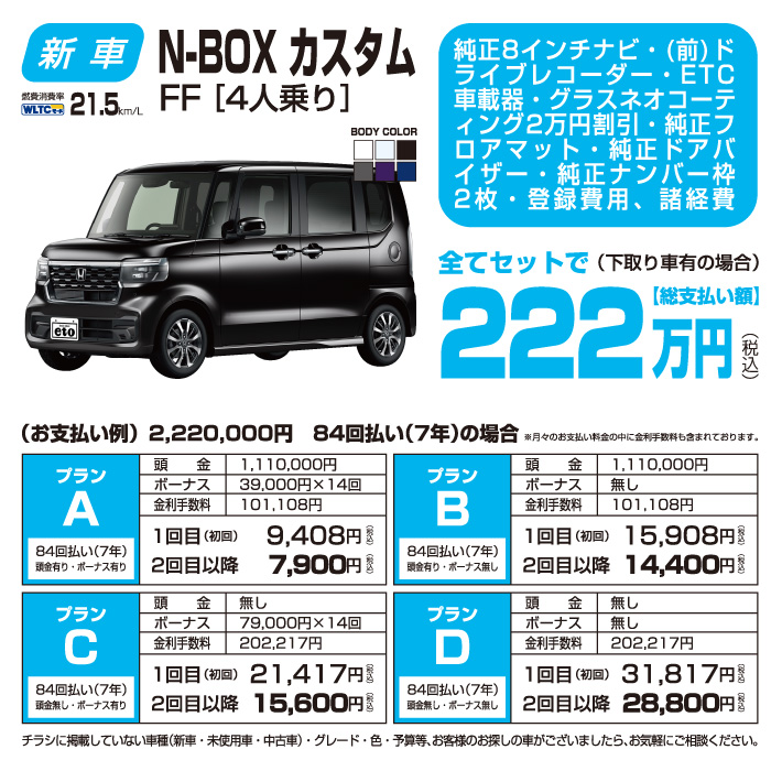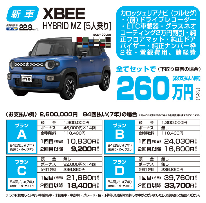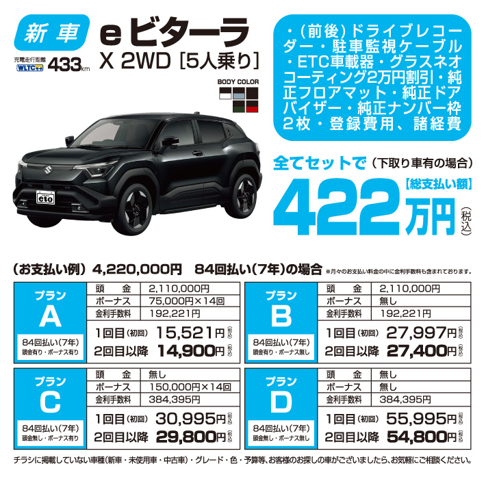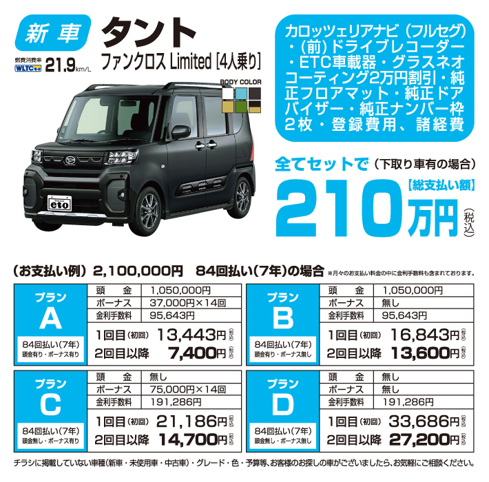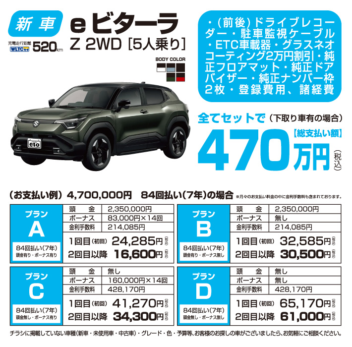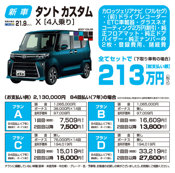 *普通車(軽自動車以外)は登録月によって自動車税が異なりますので総支払額に自動車税は含まれておりません。